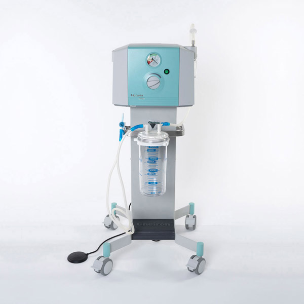 Die elektrische Absauggeräte Victoria Versa ist ein Hochleistungsmodel. Allseitig, speziell geeignet für Bettabteilungen, Operationssäle, Aufwachräume, Intensivstationen, Geburtenstationen und endoskopische Anwendungen. Das Set enthält einen fahrbaren Ständer auf einer Edelstahl-Euroleiste für die maximale Flexibilität, bis zu vier Behälter unterschiedlicher Größe und/oder ein weiteres erforderliches Zubehör (Umschaltventil, Absaugschlauch Halterung). Der fahrbare Ständer hat abriebfeste Rollen mit Sicherheitsbremsen.