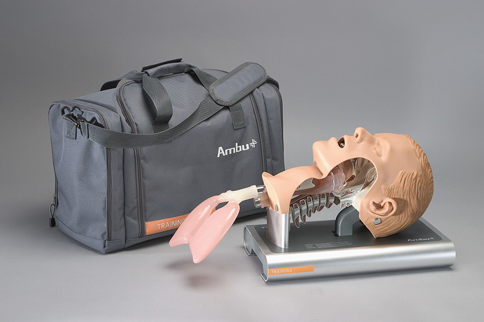 Intubační trenažér Ambu je určen pro nácvik intubace pomocí laryngoskopu, vzduchovodu, endotracheální rourky, laryngeální masky, Combitube či jiných příslušných pomůcek.