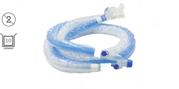 Úvod > Produkty > Zdravotnický spotřební materiál > Anestezie a plicní ventilace > Duálně vyhřívaný dýchací okruh s tlakovou linkou a komorou VHC20, dospělý (22mm), 1,5m + 0,45m hadice