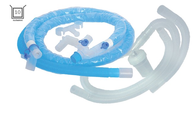 Úvod > Produkty > Zdravotnický spotřební materiál > Anestezie a plicní ventilace > Vyhřívaný dýchací okruh s kondenzační nádobkou na exp. větvi, dospělý (22mm), 1,5m + 0,45m hadice