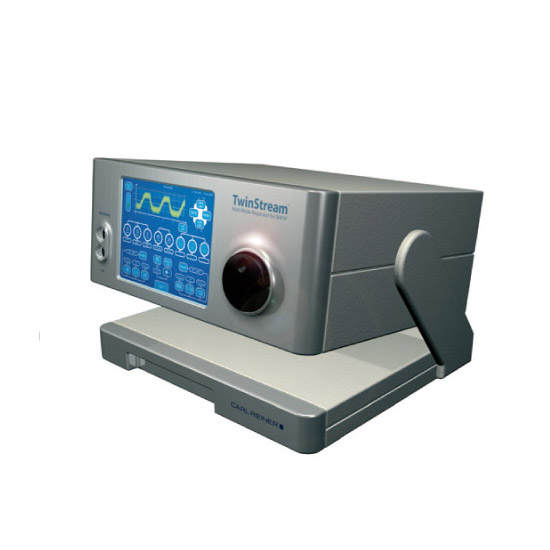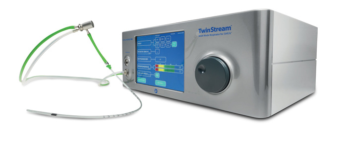 Vysokofrekvenční tryskový ventilátor TwinStream™ je první mikroprocesorem řízený ventilátor pro superponovanou vysokofrekvenční tryskovou ventilaci a nabízí úplně nový standard v tryskové ventilační technice. Je určen pro všechny hmotnostní kategorie – od novorozenců až po velmi obézní dospělé pacienty. TwinStream™ multifunkční ventilátor je možné využit pro bezkanylovou tryskovou laryngoskopii, tryskovou bronchoskopii, tryskovou tracheostomii a všechny formy tryskové ventilace v oblasti operačního pole a intenzivní medicíny – JIP (ARDS, COPD, ALI,VILI, terapie při H1N1 (prasečí chřipka) polytrauma, popáleniny, perkutánní dilatační tracheotomie (PDT), respirační terapie (mukolýza) atd.).