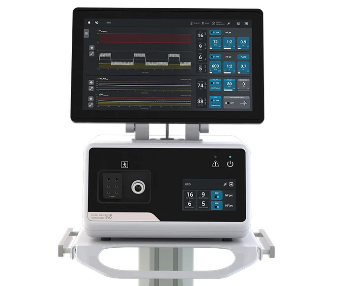 Vysokofrekvenční tryskový ventilátor TwinStream™ EVO poskytuje jedinešné řešení pro výkony se sdílenými dýchacími cestami, kde jak chirurg, tak anesteziolog potřebují přístup do horních cest dýchacích (laryngologie) nebo dolních cest dýchacích (intervenční pulmonologie nebo hrudní chirurgie).